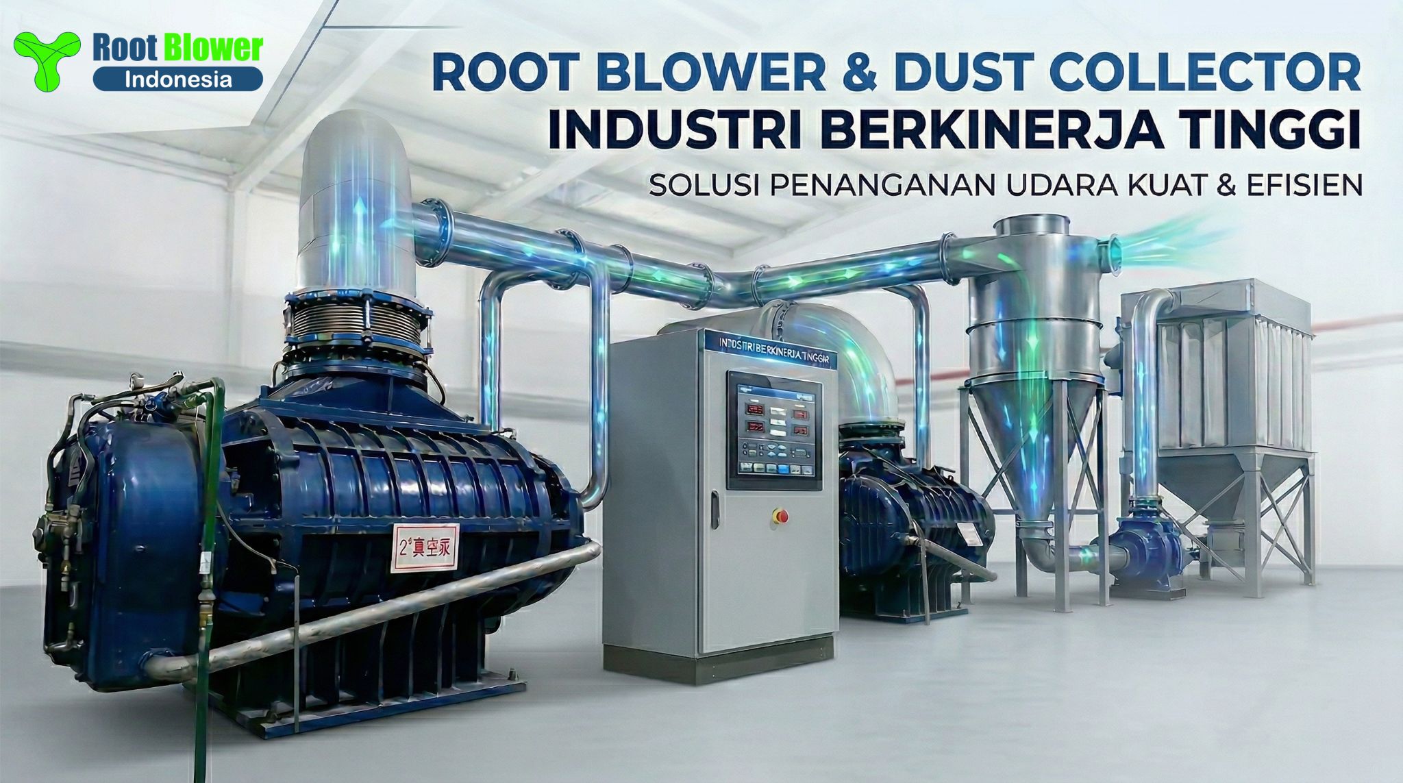 Desain root blower modern sangat kokoh, tangguh, dan biasanya sudah didesain dalam satu paket ringkas yang dilengkapi dengan filter inlet, peredam suara (silencer), dan pelindung motor. Mengintegrasikannya ke sistem dust collector lama Anda pun menjadi lebih mudah.